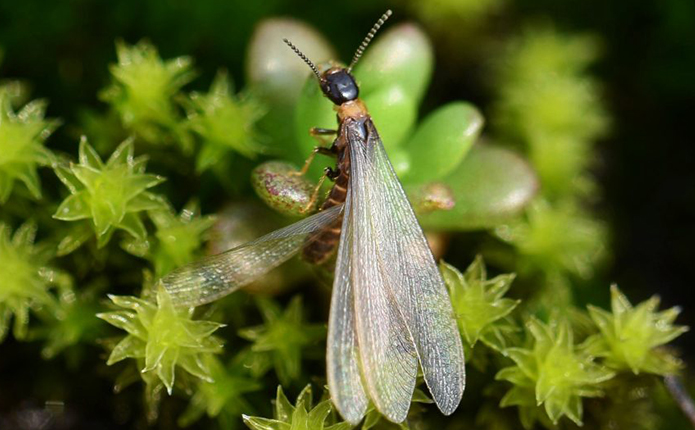 长翅型繁殖蚁有两对形状和长度都一样的翅膀,主要作用是分飞。成都每年的4月份开始是白蚁的分飞高分期,大量的繁殖蚁从巢穴飞出,在合适的地方降落进行配对,成为新的蚁王蚁后再建立新的巢穴,维持白蚁种族的延续。